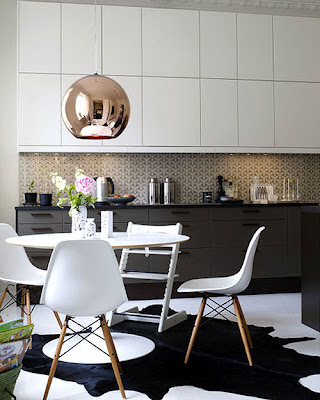 Metalleista hopea on toiminut kestosuosikkinani jo pitkään, mutta Tom Dixonin valaisimista löysin kuparin taian. Nämä kaksi metallia ei poissulje toisiaan, vaan niitä voi mielestäni käyttää aivan hyvin samassa sisustuksessa. Toki pientä harkintaa kaivataan määrän ja sijoittelun suhteen. Viime aikoina sisustuslehtien sivuilla on vilahdellut entistä enemmän kuparisia valaisimia. Huomaan aina jääväni tuijottelemaan ja tutkimaan kuparisia sisustuskuvia. Monesti kuparia on yhdistetty sisustukseen, jossa on käytetty mustan, valkoisen ja harmaan sävyjä. Minusta tämä sävysetti toimii kauniisti hyvin yhdessä. Mutta herkuttelen ajatuksella, että pääsisin suunnittelemaan kotia, jossa käytettäisiin runsaasti valkoista, hitusen konjakin sävyistä nahkaa ja harkitusti kuparisia yksityiskohtia! Tähän kun yhdistetään vielä raikas ja hyvin toteutettu valaistus, niin wau! :)