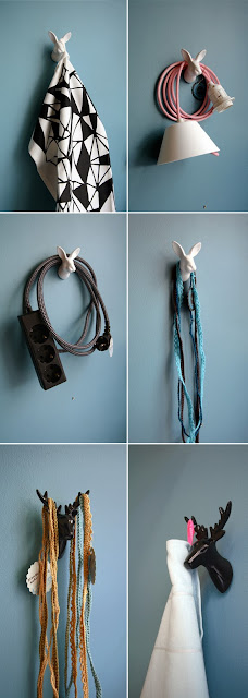 Mikäli onni potkii, niin lahjakortin voi tuhlata esimerkiksi näihin Hollantilaisen Jorine Oosterhoffin söpöisiin eläinseinäkoukkuihin (12 €/kpl)!